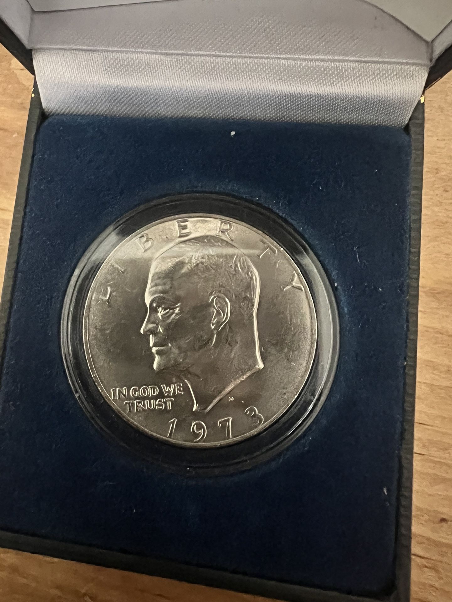 1973 D Eisenhower IKE Dollar • Brilliant Uncirculated BU in Capsule & Scare Key Date Display Box • Denver Mint • Certificate of Authenticity