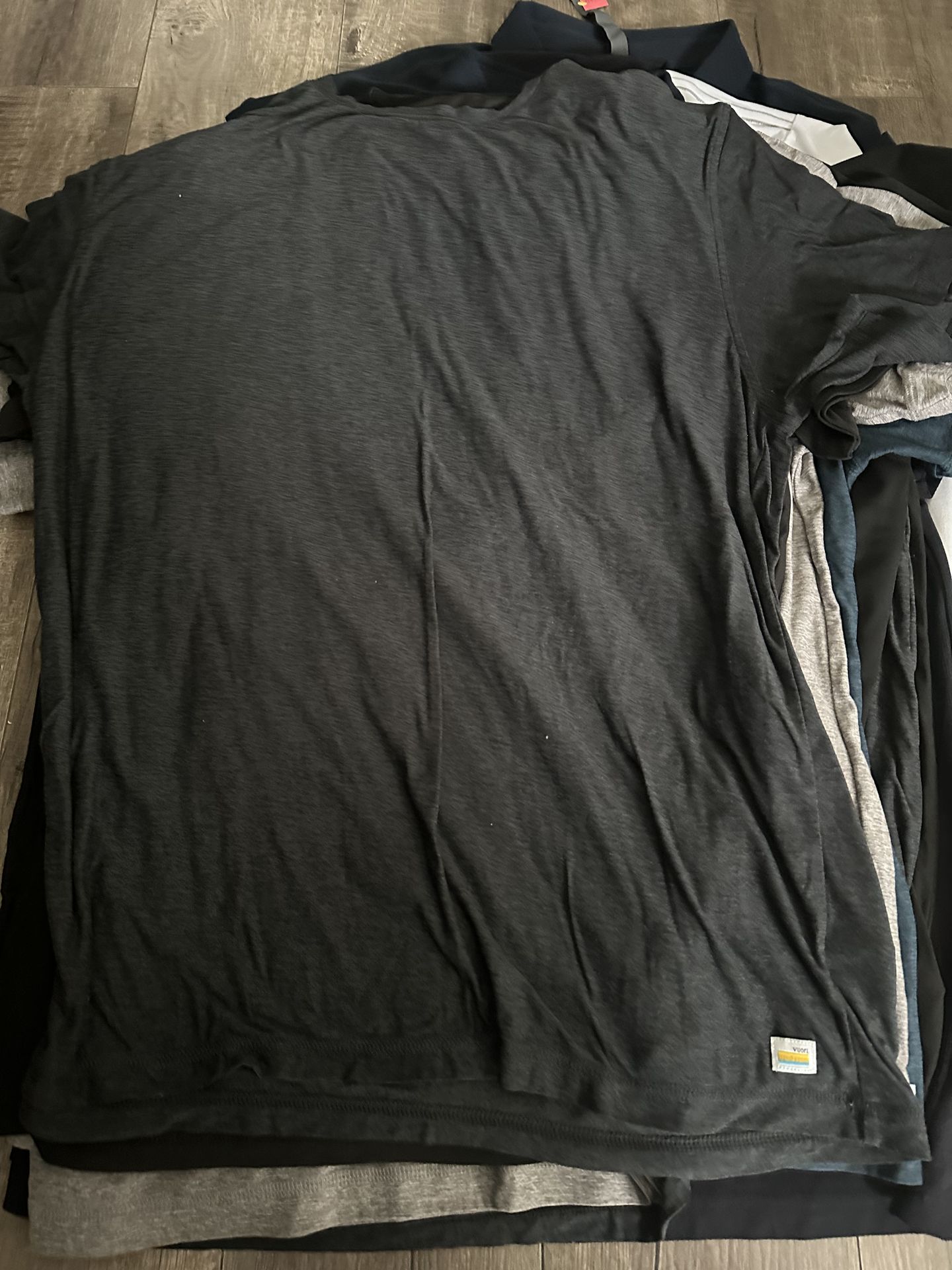 Size X-Large men $5 each I have 14 T-shirts in total 6 black 2 charcoal gray 2 blue 2 gray 2 off white