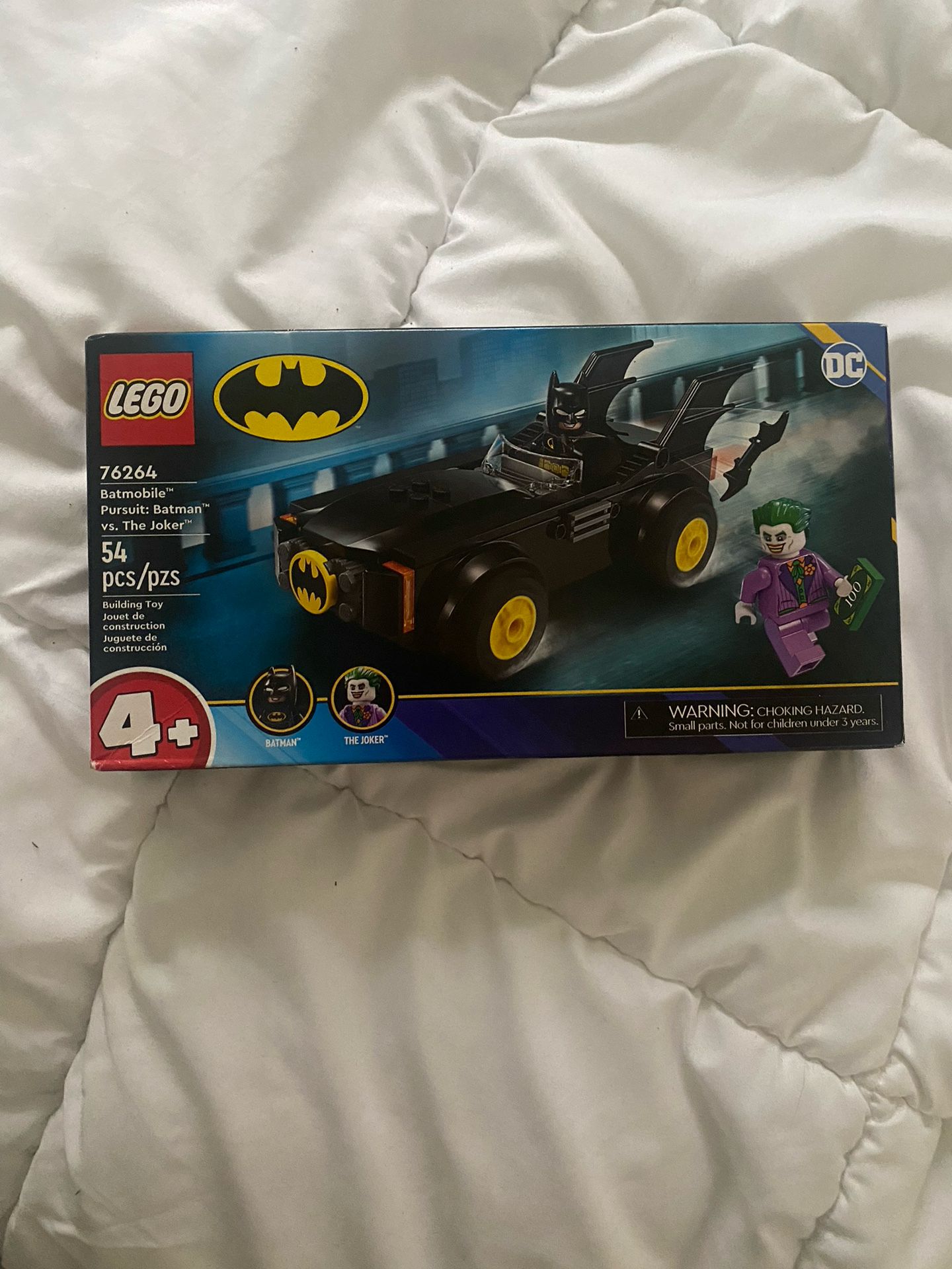 EGO DC Batmobile Pursuit: Batman vs. The Joker (76264) puts Super Hero adventures into the hands of kids ages 4 and up. This LEGO 4+ set introduces children to creative construction and endless imaginative fun with 2 of the most iconic comic-book characters: Batman and The Joker. Accessories featured in this DC Super Hero playset, including The Joker’s stolen money and Batman’s cape, helmet and Batarang, help inspire imaginative role play. A Starter Brick car chassis helps kids build the Batmobile toy ’by myself’. A colorful picture-story serves as a build-and-play guide, and for added digital fun builders can zoom in, rotate sets in 3D and track their progress using the fun, intuitive LEGO Builder app. 4+ sets are the perfect way for adults to share the building fun with children, whether they are a seasoned LEGO fan or are experiencing LEGO bricks for the first time. Contains 54 pieces. Batman action for ages 4 and up – LEGO DC Batmobile Pursuit: Batman vs. The Joker (76264) is designed to boost the imagination, dexterity and building confidence of kids ages 4 and up Iconic characters – This DC Super Hero playset includes Batman and The Joker and a buildable Batmobile toy with a large Starter Brick chassis so the build-and-play fun can start right away Batman car toy – The Joker has stolen some money and kids must help Batman bring the Super Villain to justice with a little help from the Batmobile Gift for kids ages 4 and up – This birthday, holiday or any-day treat is designed specially to support and strengthen the essential developmental skills of your young superhero Big enough for epic adventures – The Batmobile measures over 2 in. (6 cm) high, 6.5 in. (17 cm) long and 2.5 in. (7 cm) wide