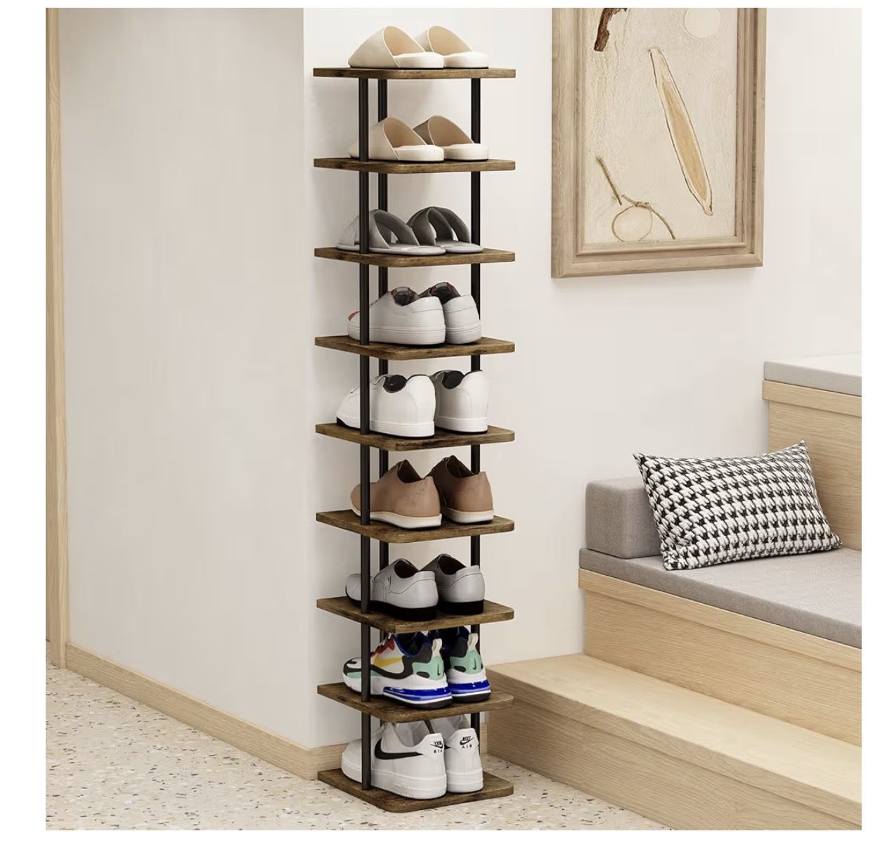 Shoe Rack 9 Tier Vertical Storage Organizer Narrow Metal Slim Shelf Modern Free Standing Shoe
