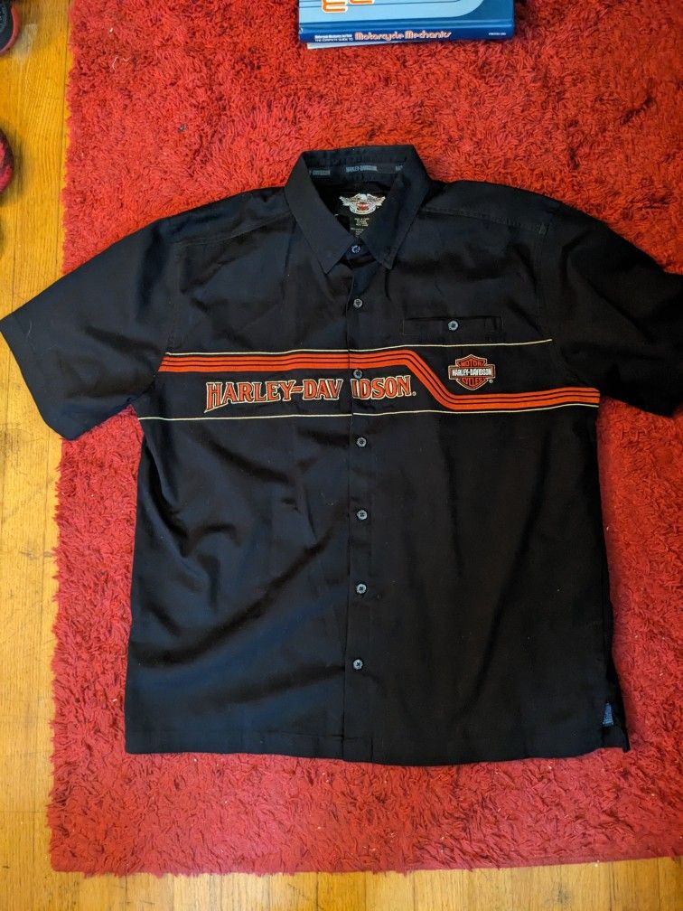 Harley Davidson button up shirt, Worn once, new condition, size large, stitched graphics on both sides, classic logo