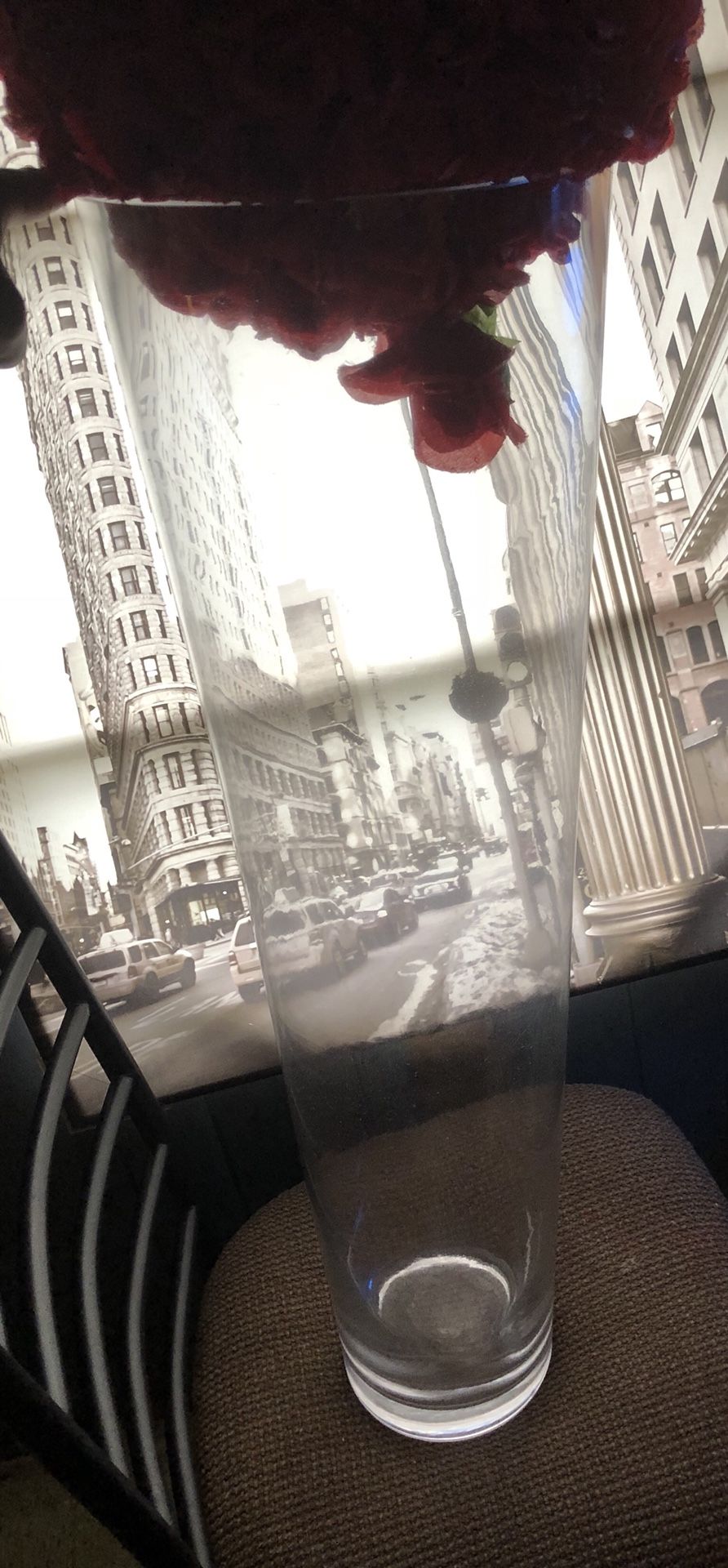 I’m selling 8 BIG clear vases that I only used once for my wedding. Just the vases NOT the red roses. They are pretty big just hard to tell on the pictures.