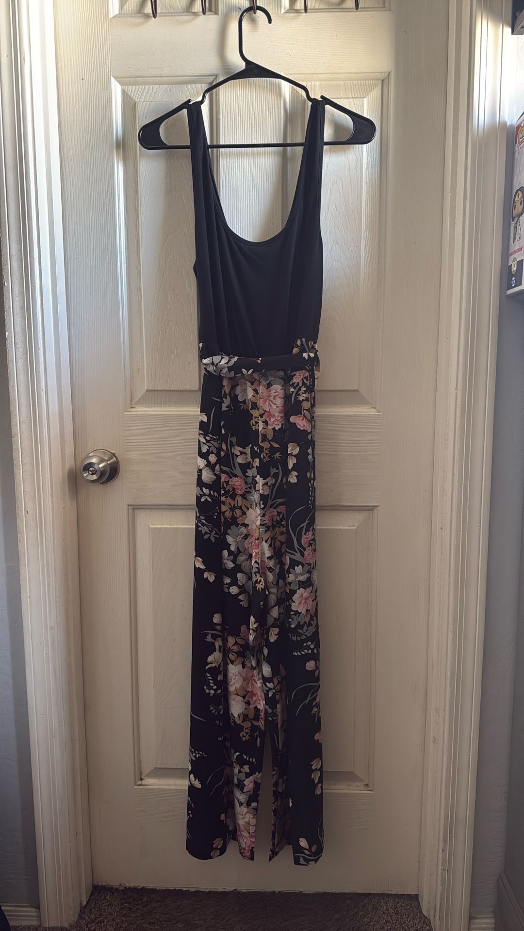 Shein 0XL Black & Floral jumpsuit. Work once.