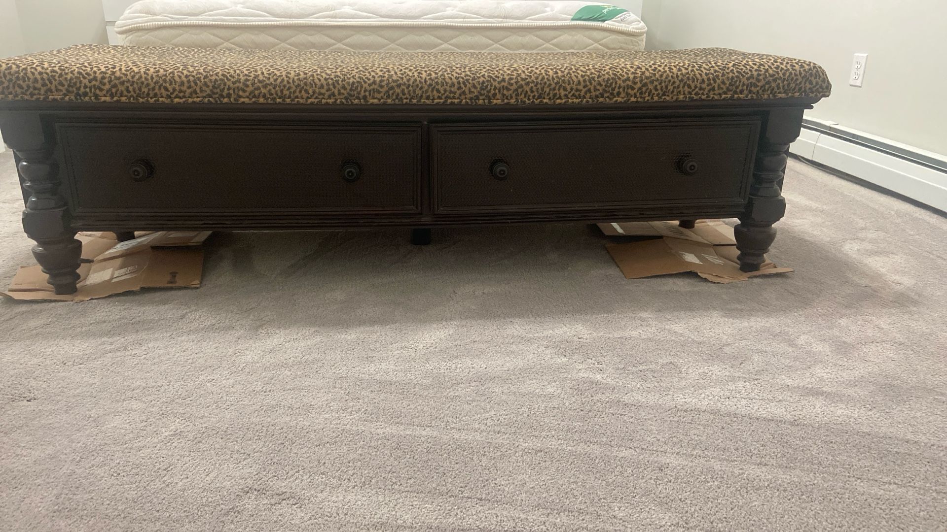 Solid wood King sized Footboard bench with two drawers 66” long by 18 1/2” deep x 18 1/2” high two nice sized drawers