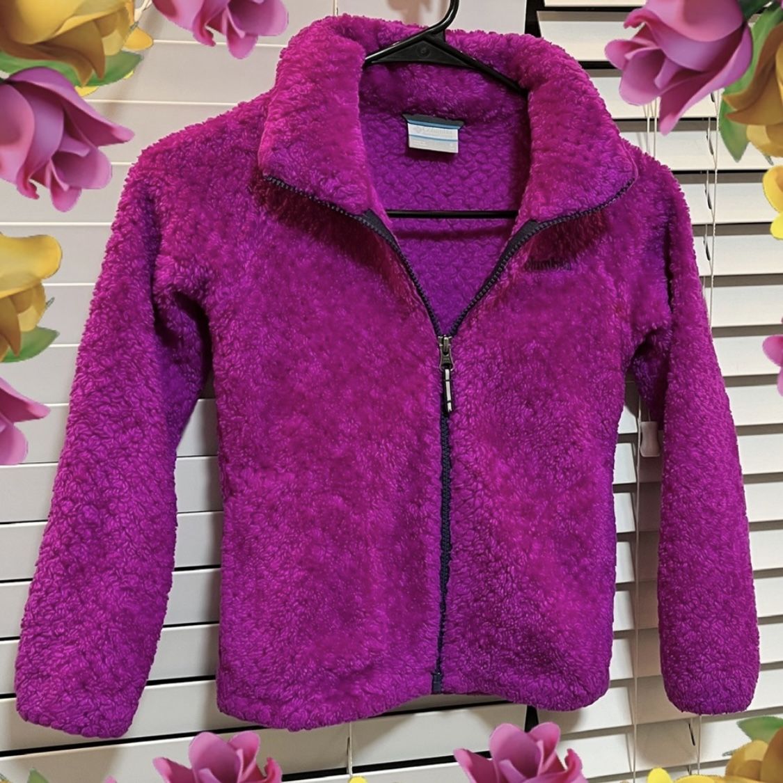 Columbia Girls' Fire Side Sherpa Purple Jacket Size S (8) Cozy Columbia fleece jacket. Perfect for warmth and comfort. Pre-loved still in a beautiful condition! About 15” pit-pit About 16” pit - end of sleeve About 19” L Bundle & save Reasonable offers considered