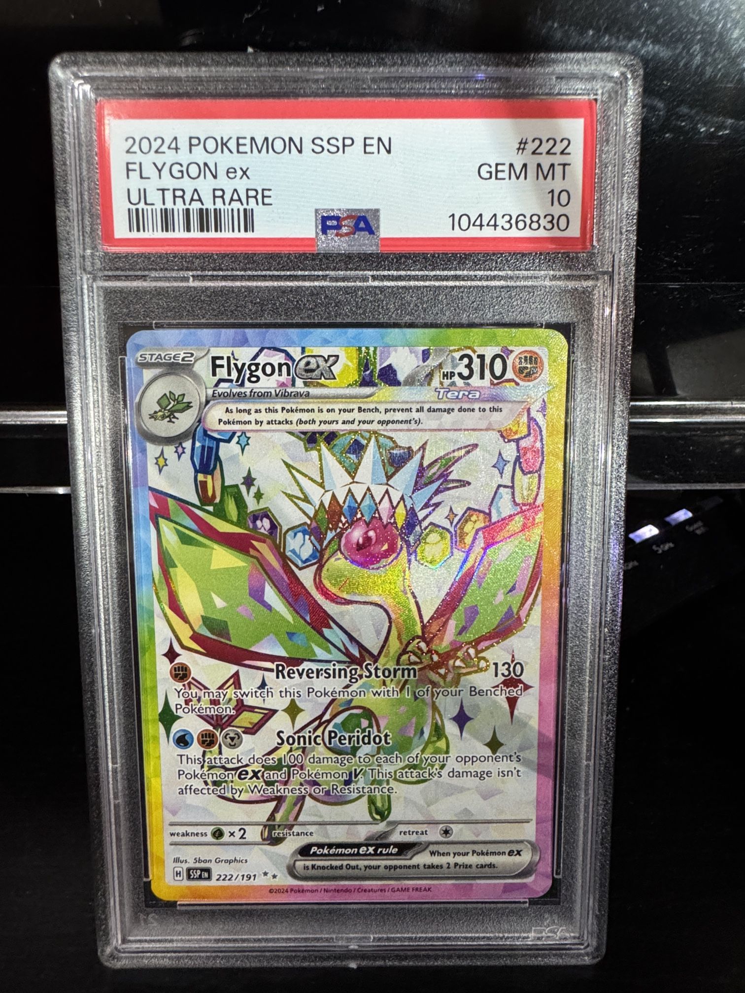 2024 POKEMON SSP EN-SURGING SPARKS 222 FLYGON EX ULTRA RARE PSA 10