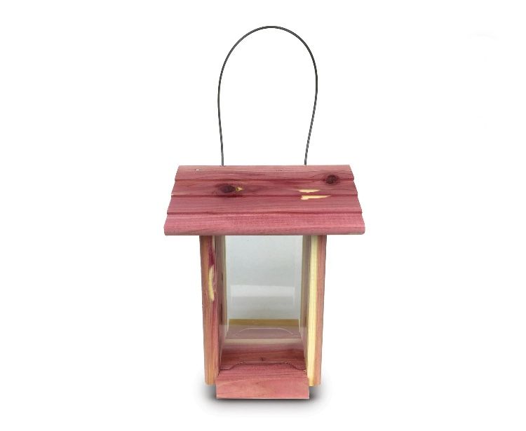 Red Cedar, Dinette Wild Birds Hopper Feeder, 1.25 lb. Seed Capacity , New Sustainably Sourced: The Pennington Red Cedar Dinette Wild Bird Feeder is made of Eastern Red Cedar, a renewable resource. • Easy to Use: Simple to fill and ready to hang for convenient bird feeding. • Attracts Songbirds: Ideal for attracting smaller birds like chickadees, titmice, and goldfinches. • Handcrafted Quality: Skillfully handmade in Ohio by Amish master craftsmen. • Seed Capacity: Holds up to 1.25 pounds of wild bird seed, perfect for mixes or black oil sunflower seeds. • Durable Material: Made from Eastern Red Cedar, naturally resistant to weather and insects. • Portable Design: Lightweight and easy to move, making it versatile for different outdoor spaces.