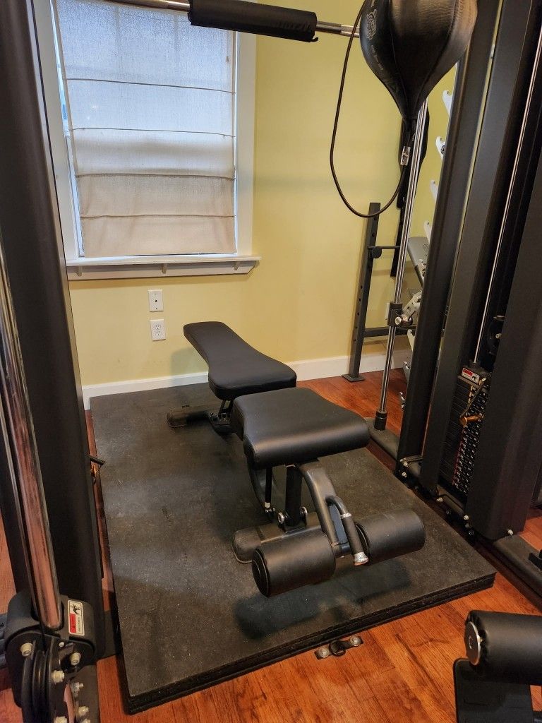 Fully loaded home gym everything but the sauna obo. Smith pl 7366 4 station main center. Golds gym fully loaded dumbel rack. Eliptical fan bike. And a bunch of other equipment needed for full Workouts. Benches. Floor matts. Free weight bars. Bar locks. Please contact for more info