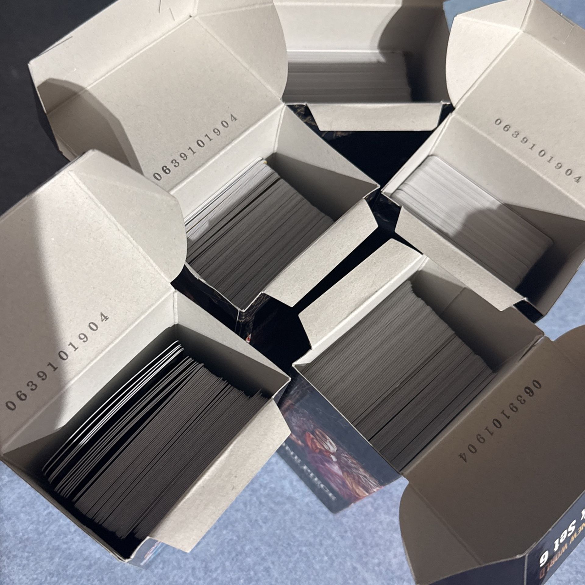 One piece card game trading cards emperors in the New World double pack set six these are all cards that came out of the packs of the display box