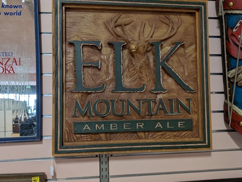 Vintage Elk Mountain Amber Ale Carved Wood Beer Sign Framed Bar Wall Decor Art