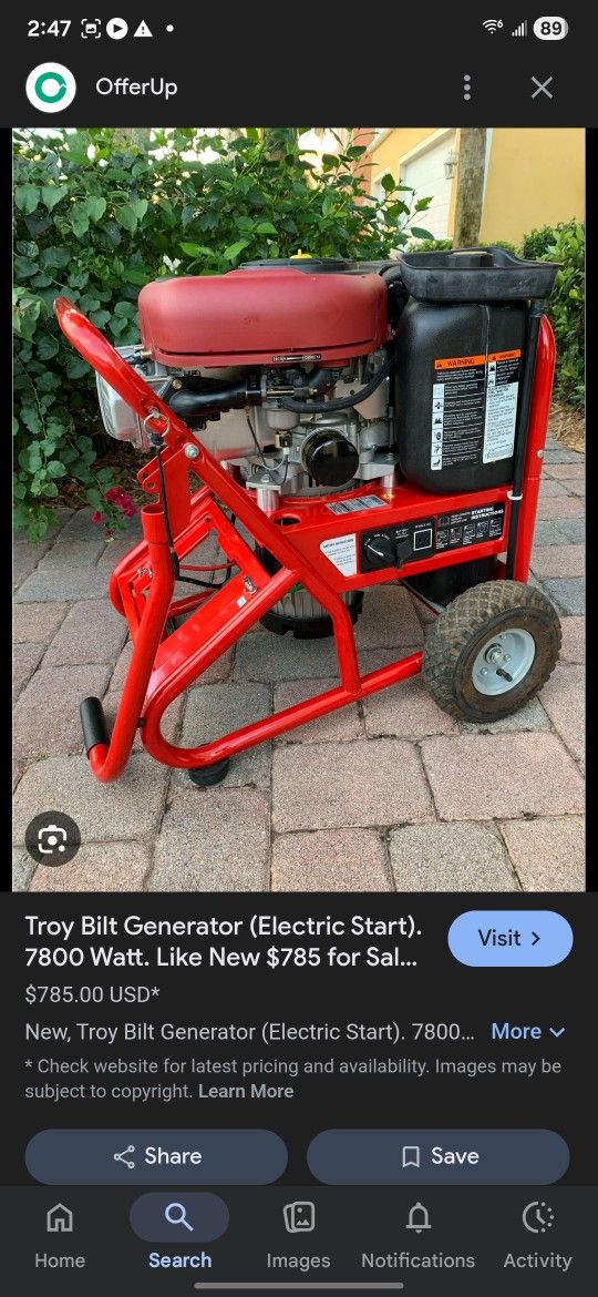 7800 WATT GENERATOR TROY-BUILT