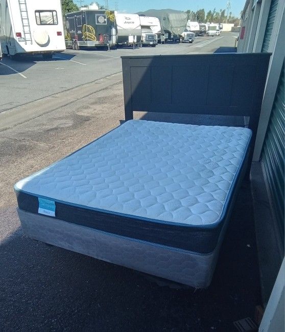 FULL BED FRAME WITH BOX SPRING AND MATTRESS