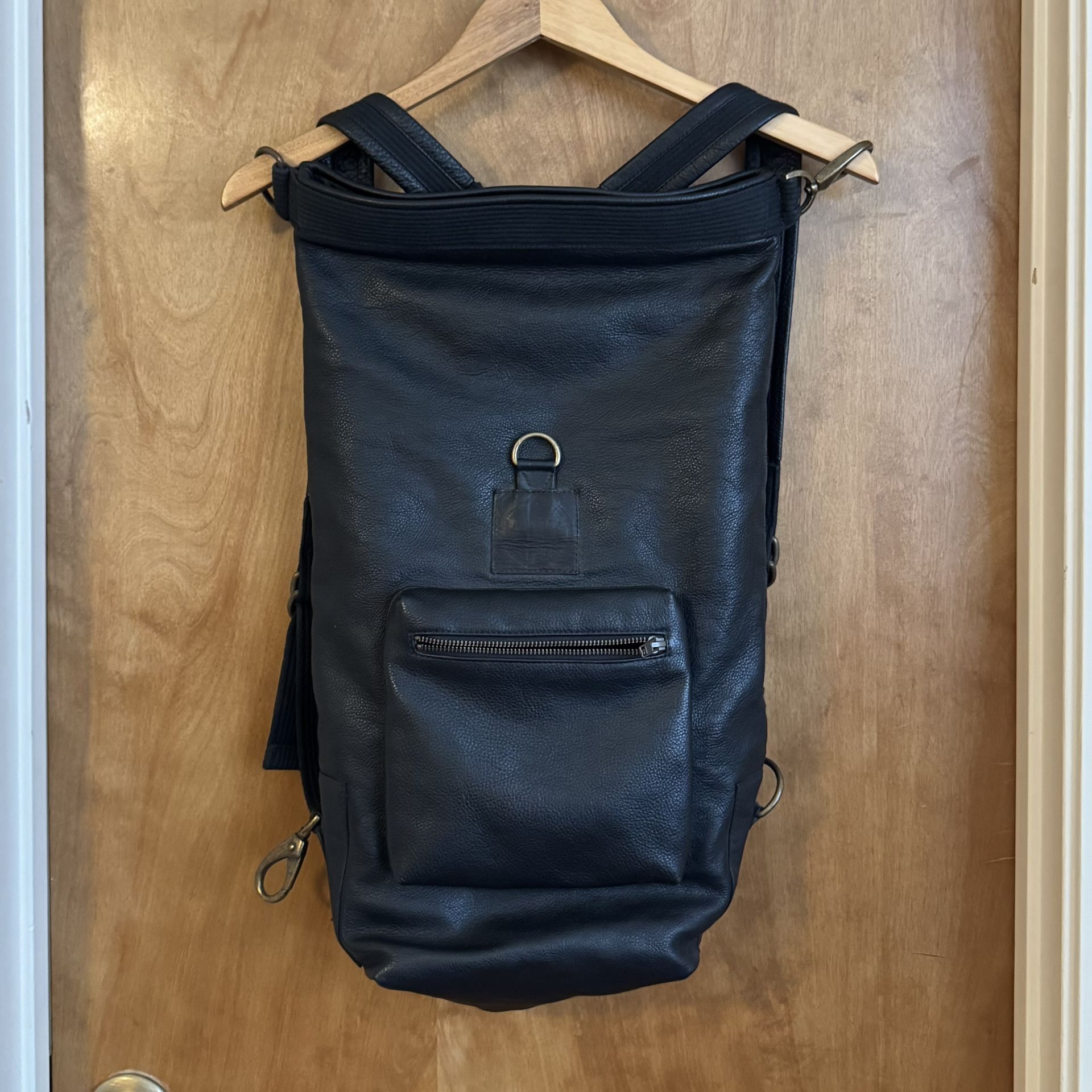 TM1985 Tielor McBride Handmade Black Genuine Leather RollTop Backpack Daypack Work Bag