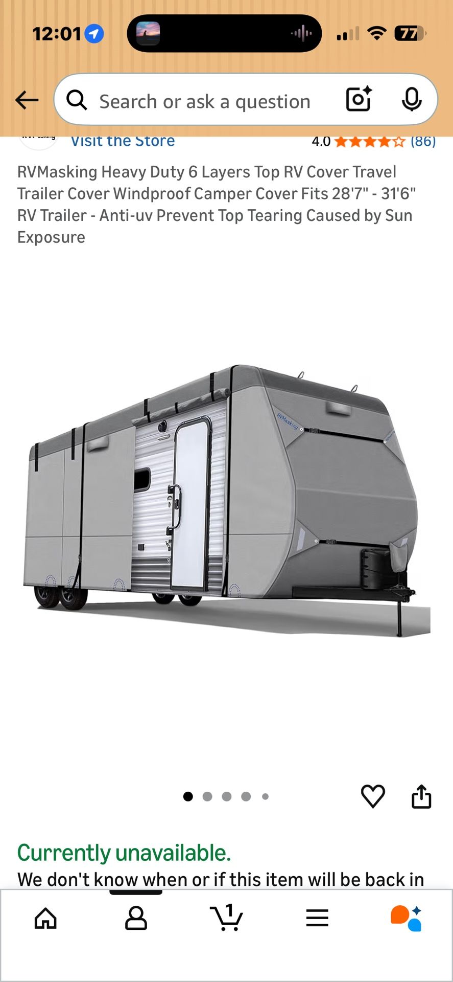 I bought this RV cover and then I sold the RV. It’s never been opened or used. It is not available on Amazon anymore when I bought it. It was over $200. I will take $100 or best offer.