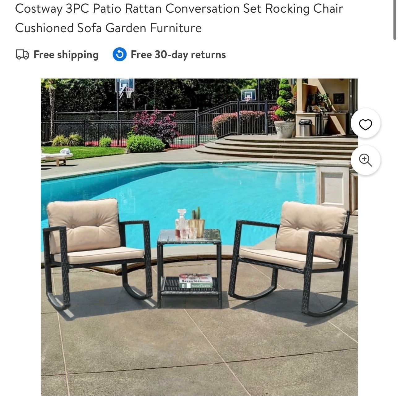 Costway 3PC Patio Rattan Conversation Set Rocking Chair Cushioned Sofa Garden Furniture $90