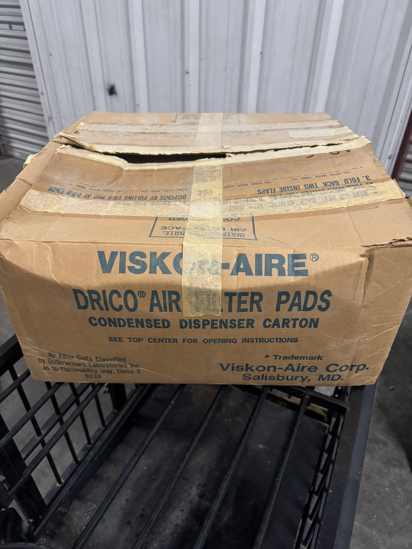 Viskon-Aire Drico Air Filter Pads Dispenser Carton 13 Pads. They are about 22” square.