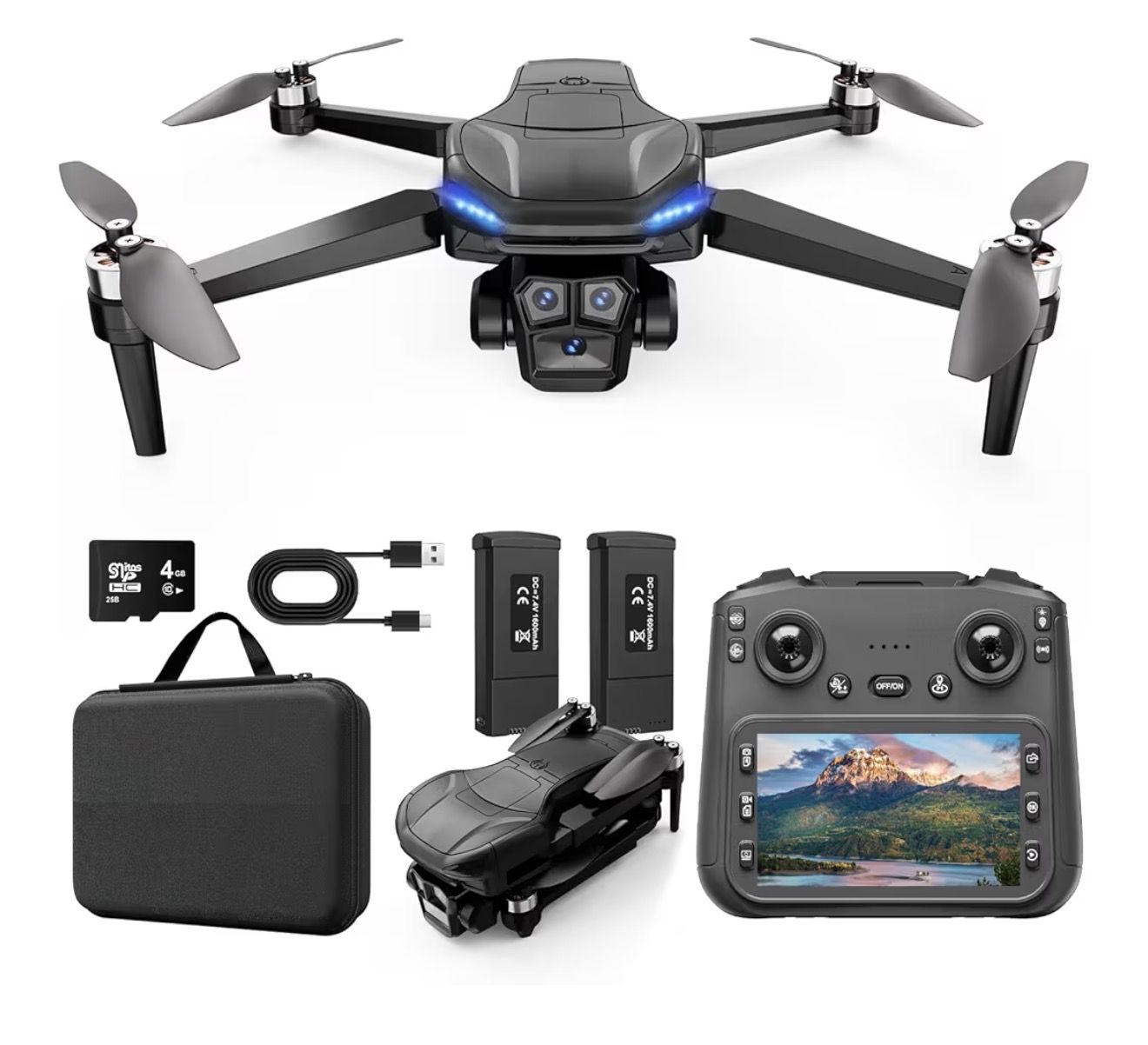 Dron GPS 4K con cámara para adultos con controlador de pantalla HD de 4.5", motor sin escobillas, incluye tarjeta SD, tiempo de vuelo de 60 minutos, regreso automático, seguimiento