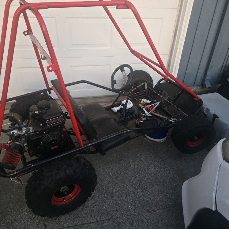 Vintage manco has 212 predator motor stage 2, I have the original motor that runs 5hp power stage motor, I have new tires, I have a extra comet clutch and belt for it extra carb, I have extra sprocket holder two brand new in box I also have some other extra parts and if it is for the kids I have the original seat belts and extra throttle cables for it as well. This is fun for dirt roads. It has Enuf power and super fun i don't live near the dirt no more so ready to get rid of.