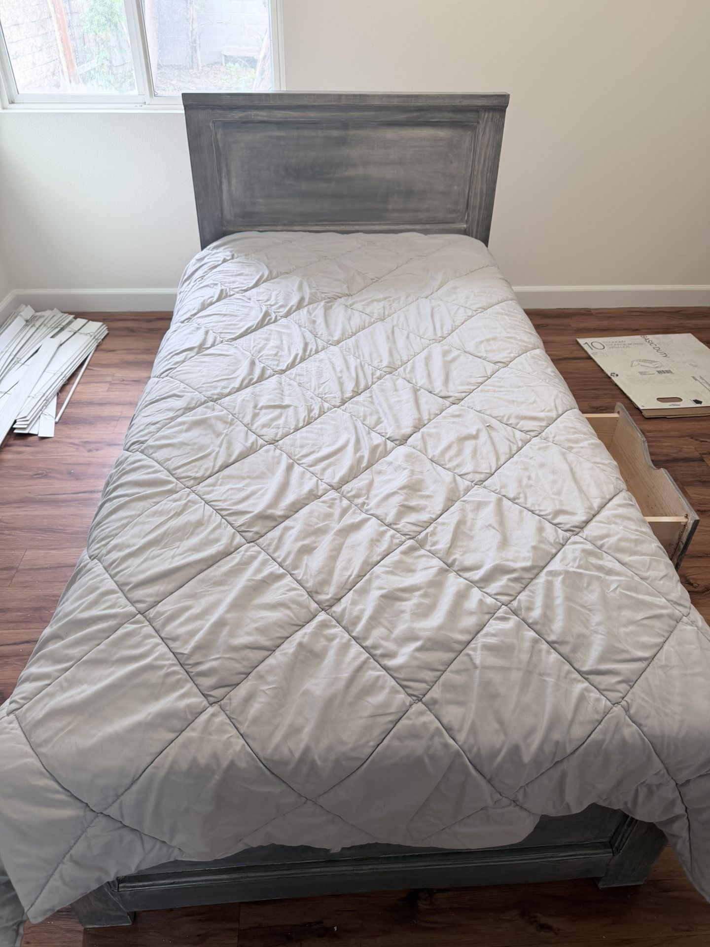 Grey Twin XL Mattress, Bed Frame W Drawers