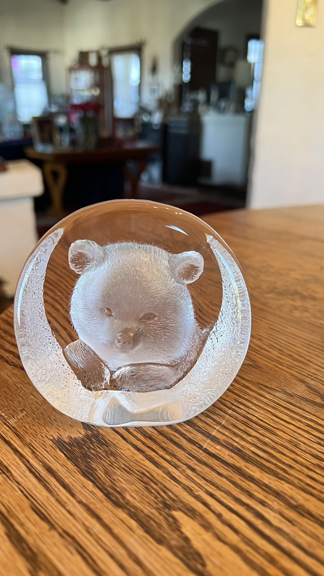Mats Jonasson Signature Collection 28% Lead Crystal Bear Paperweight Sweden