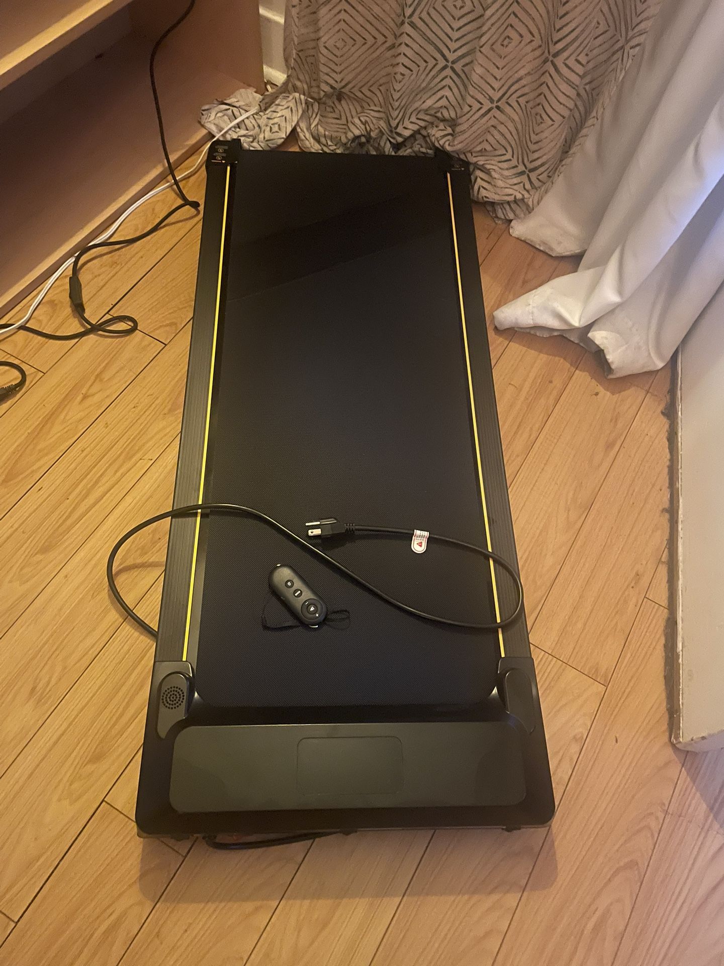 This is a small,portable walking treadmill meant to go under a standing desk. It comes with a remote control where you can monitor levels via the digital screen.