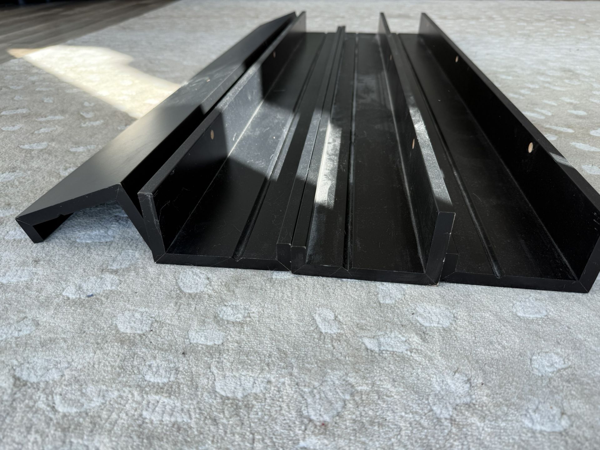 Mosslanda: 4 black shelves 4 white shelves 16 marietorp black shelves