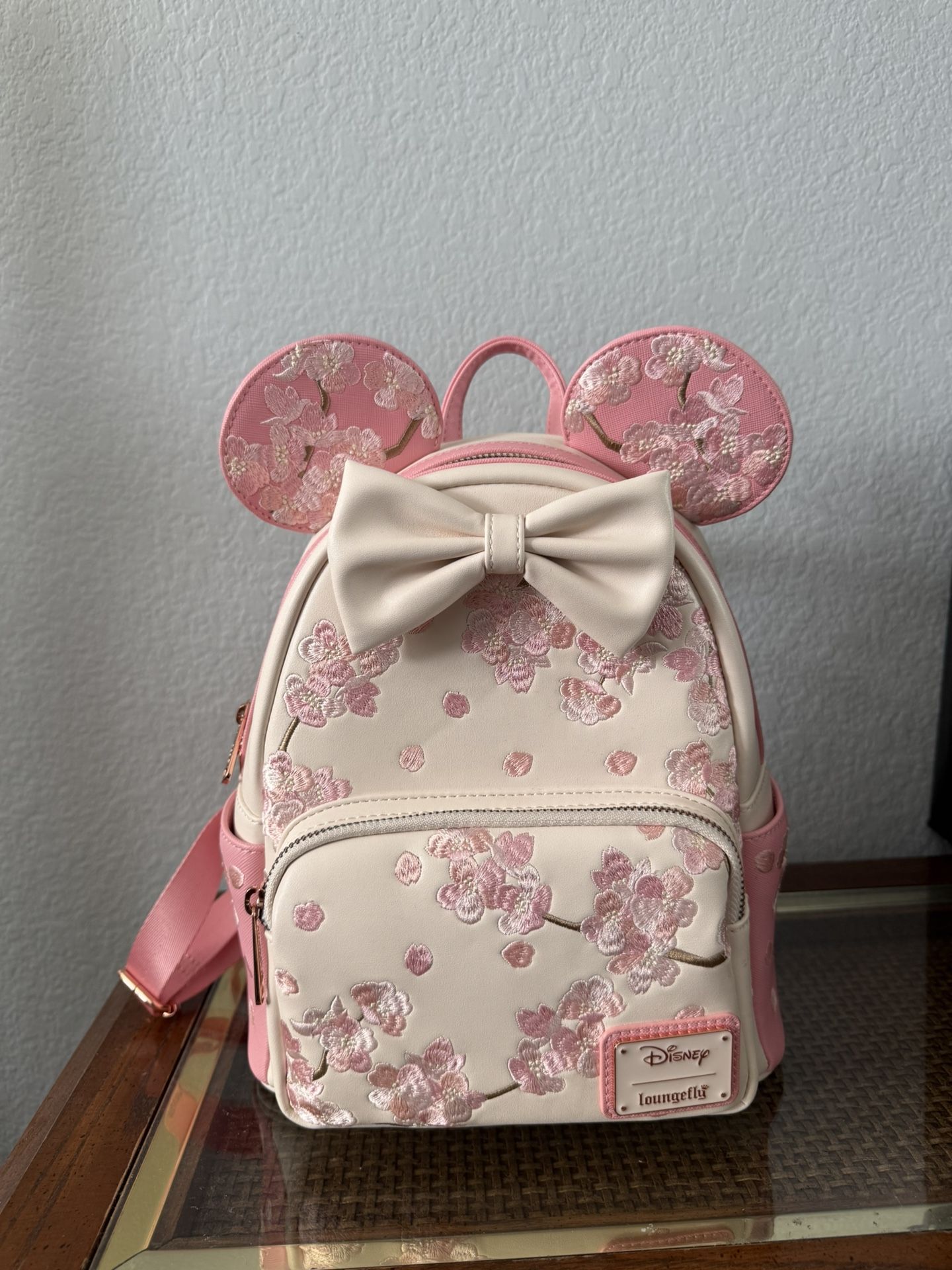 Used only once, like new. Loungefly Minnie Mouse Pink Cherry Blossom Mini Backpack