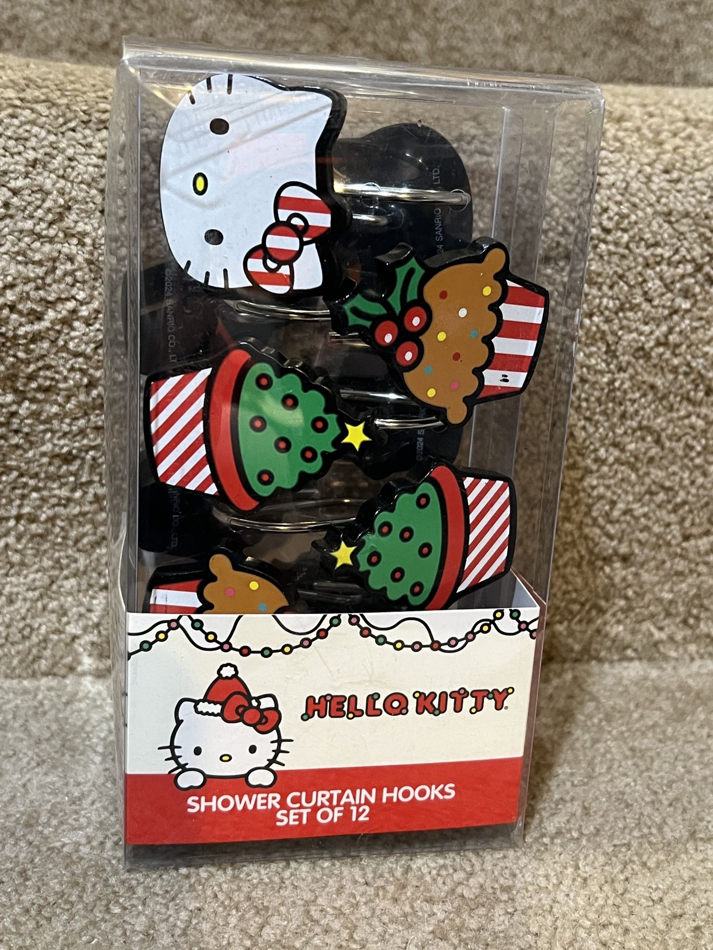 Hello Kitty Santa Hat Cup cakes Christmas Shower Curtain Hooks - Set Of 12