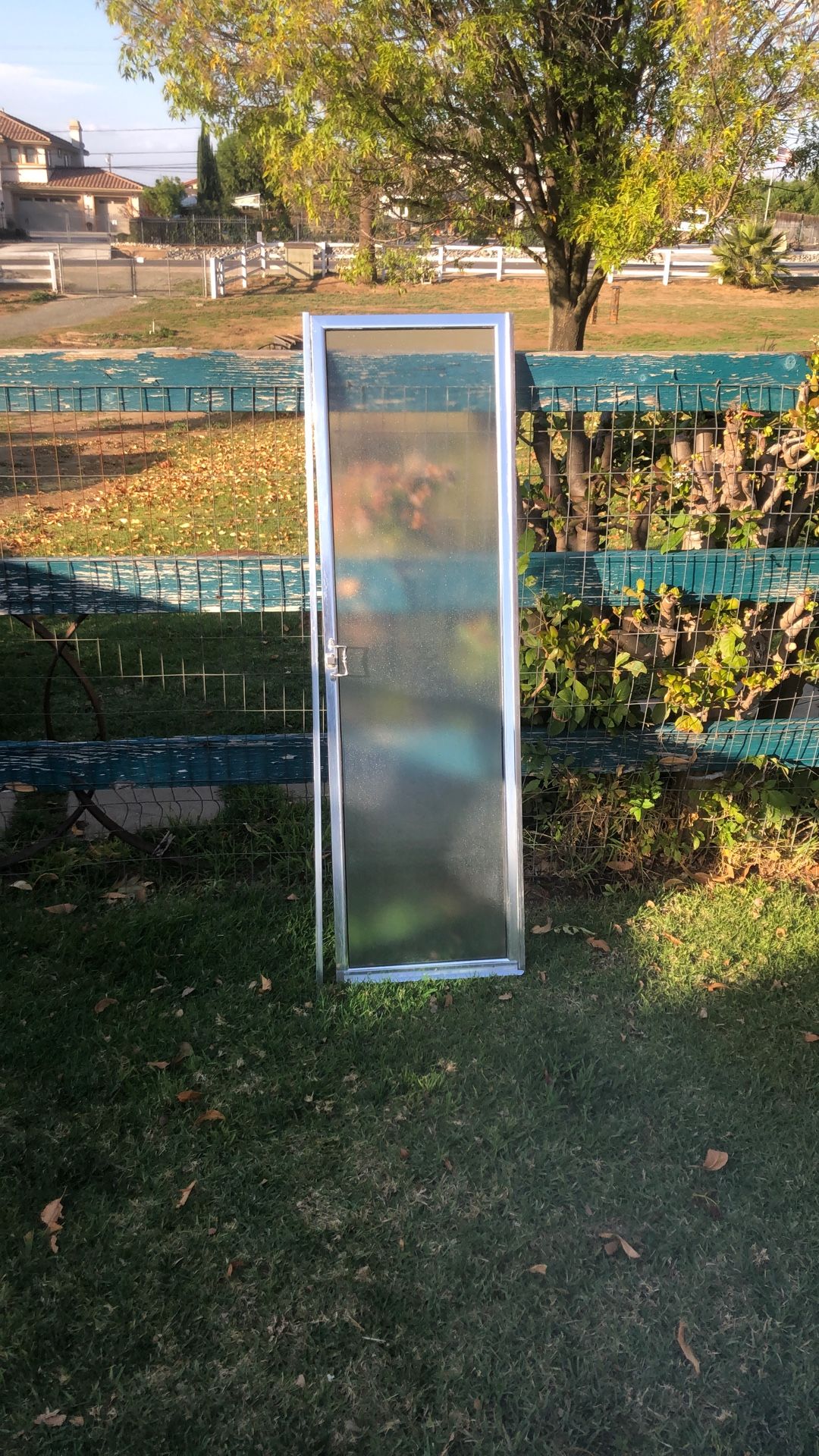 Used shower door is 18” x 62”. It is in good shape. Comes with full length door hinge and striker strip. New bottom seal.