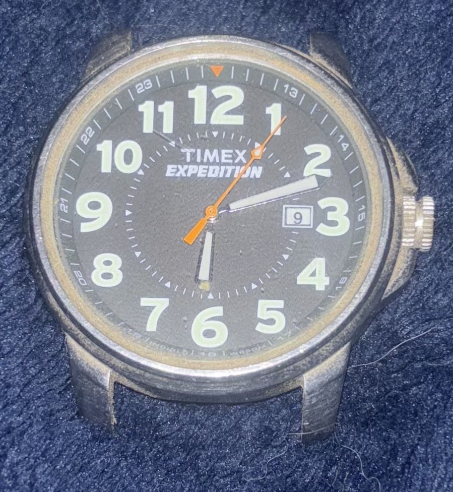 Navy blue & Stainless Steel Silver Vintage Men’s Timex Expedition wrist watch