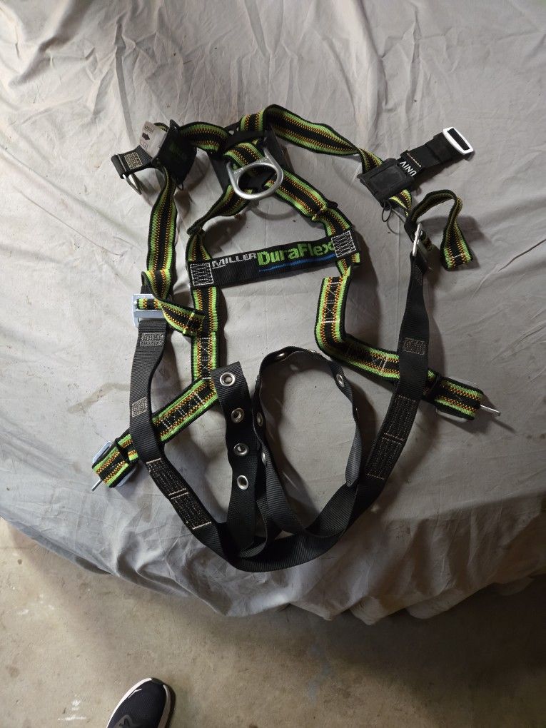 Tree trimmers here's a great deal on something that might save your life. Honeywell Miller E650 DuraFlex full-body harness. It is an E650-4/UGN model, which is a universal-sized harness with green webbing. The harness is designed for fall protection and is made from a blend of 85% polyester and 15% urethane elastomer. Features and Standards The harness is specifically designed for work at heights in various environments, including confined spaces, construction, and wind and tower work. It features stretchable webbing that conforms to the user's body, which is intended to increase comfort and mobility. The harness meets several safety standards, including ANSI Z359, ANSI A10.32, OSHA 1926, and CSA Z259.10. The ANSI Z359 standard is a set of guidelines for fall protection equipment and managed fall protection programs. OSHA regulations, such as those in Part 1926, are legally binding requirements for employers to provide fall protection at specific heights. The harness has a maximum working load capacity of 400 pounds (181.4 kg) and includes a back D-ring. RETAIL PRICE $280 It's date of manufacturer is April 2017 and it's gone out on several jobs but to my knowledge it was never used. It is in excellent unused condition and has always been stored in a sealed BAG AWAY FROM UV LIGHT. It would pass inspection no problem.