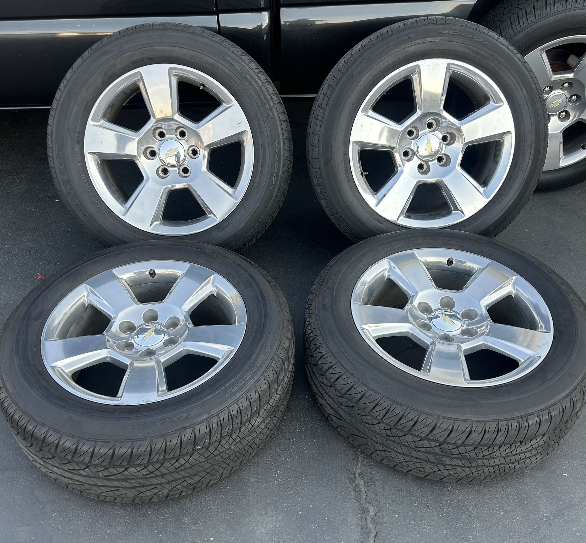Chevy Silverado LTZ 20" Wheels 3 have 75% tire life 1 has 50% 1 wheel has some scratches No cracks No TPS Asking $740 OBO Located in Corona ‼️SE HABLA ESPAÑOL‼️ Fits: 1999 -- 2023 Chevy Silverado, Tahoe, Suburban models as well as GMC Sierra Yukon Denali Etc Chevy wheels Chevy rims Chevy Silverado wheels Chevy Silverado rims Silverado wheels Silverado rims Tahoe rims Tahoe wheels Sierra rims Sierra wheels yukon rims Yukon wheels gmc wheels gmc rims dealer takeoffs OEM wheels OEM rims