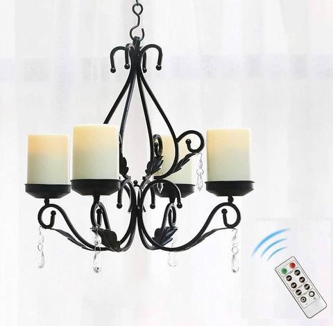 3 in 1 Lighting Chandelier with 4pcs Battery Operated Led Candle with Remote, Table Centerpiece for Indoor or Outdoor Gazebo, Patio Decoration, Black