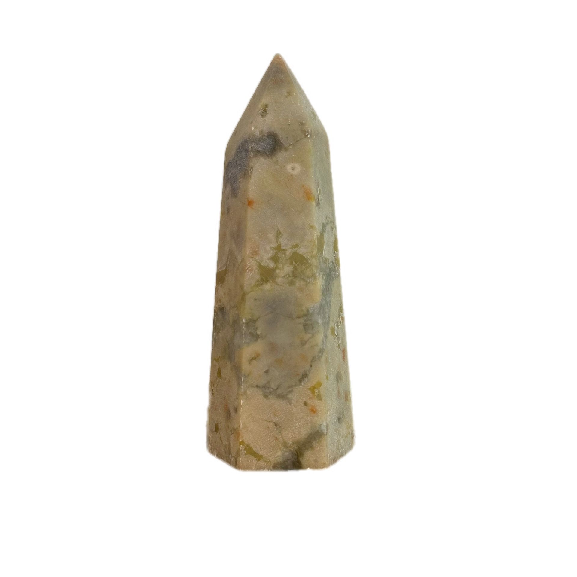 Flower Jade or Green Flower Agate Stone Tower/7” tall