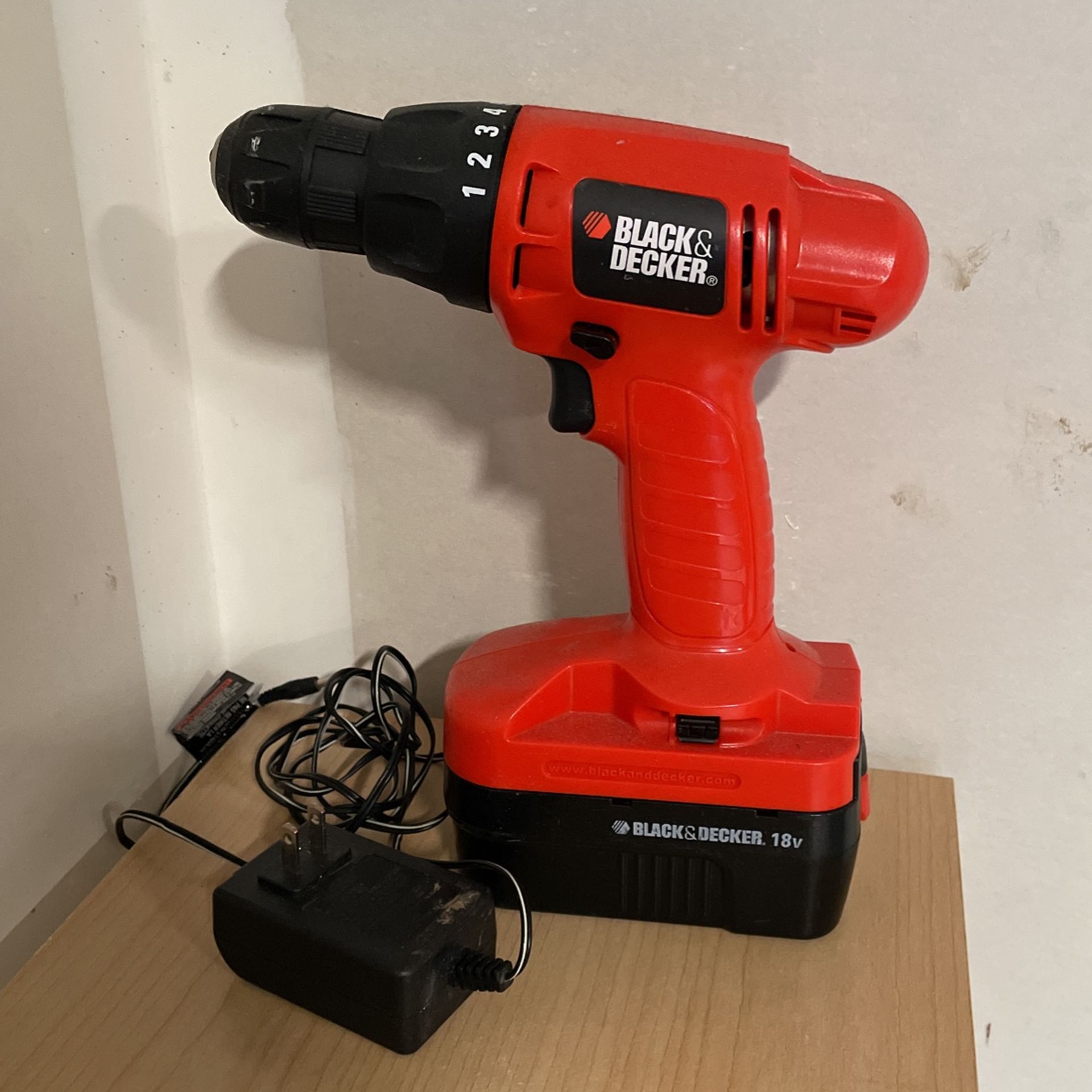 Black & Decker 18v Drill With Charger, works great. Note :- Drill bits are not included.