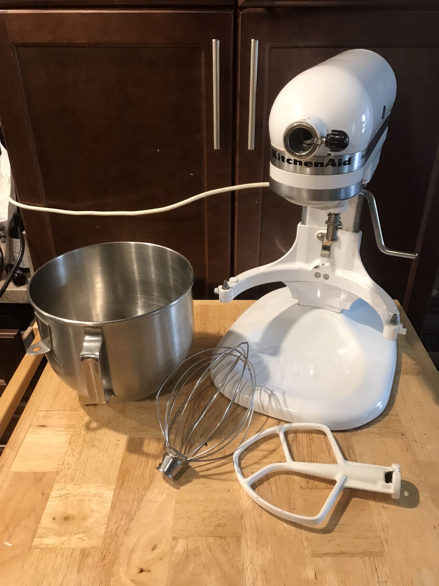 Great pre-owned condition (please see photos) available for pickup in encanto area 92114 Tested all 10 speeds and they work. KitchenAid Stand Mixer with 2 Attachments and the Stainless steel bowl. Information • Flaws: There are stains and dirt on the outside of the mixer. The whisk has 1 spoke loose, works fine though, pictured • We are happy to answer your questions! Thank you for viewing our listing! Have a great day!