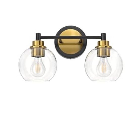 Bathroom Light Fixtures, 2-Light Bathroom Vanity Light with Globe Glass Shades E26 Sockets, Bathroom Lights Over Mirror for Bedroom Hallway Living Room, Black & Gold Finish