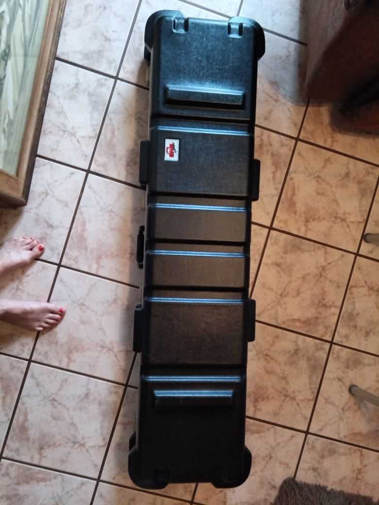 Double rifle case with wheels. Holds two rifles. Case is in good condition. Comes with keys to lock and secure your rifles.