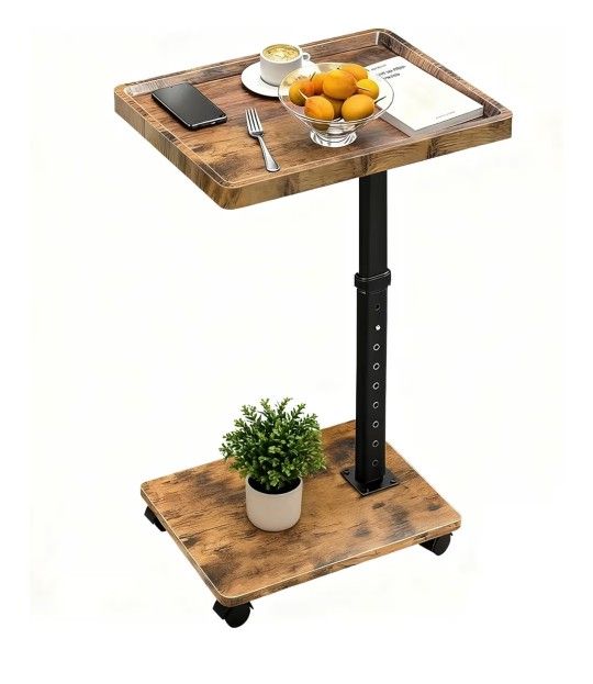 C Shaped End Table Adjustable Height, Sofa Side Table with Wheels, TV Tray Table for Living Room, Bedroom, Small Spaces, Couch Tables That Slide Under 🤎