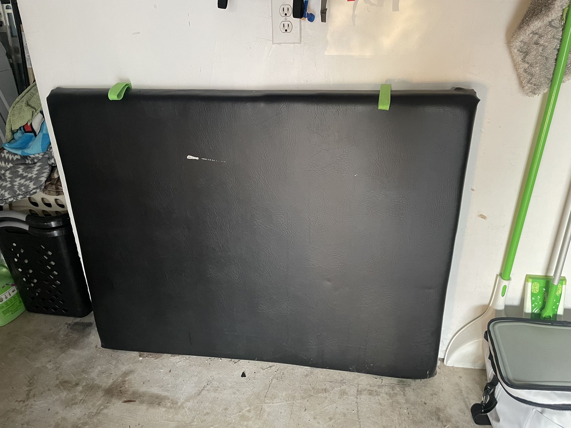 Used this in my explorer to car keep. It’s a padded board that makes the middle seat flat. Also have the air mattress that goes on top that I’ll throw in. I accidentally got some paint on it (the gray marks in the photo), but it has green handles that make it easier to move around at the top.