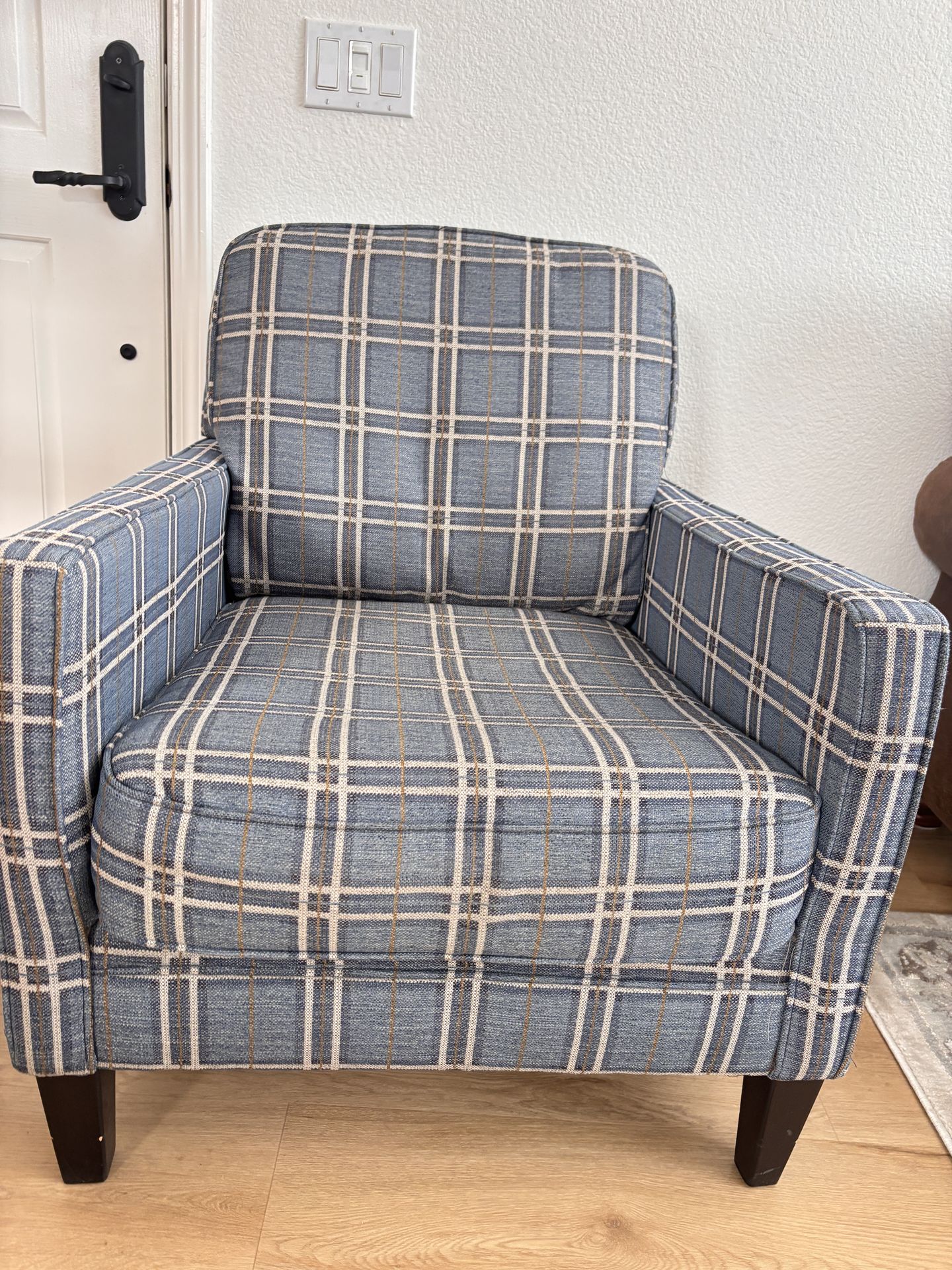 Blue Plaid Accent Chair - Comfy Reading Chair - Great Condition
