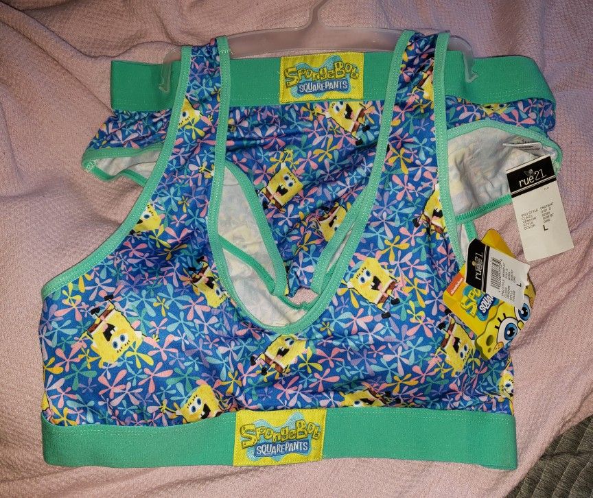 Junior's size large SpongeBob square pants bra and underwear set from Rue21. New. Pick up in Aloha, no holds, cross-posted.