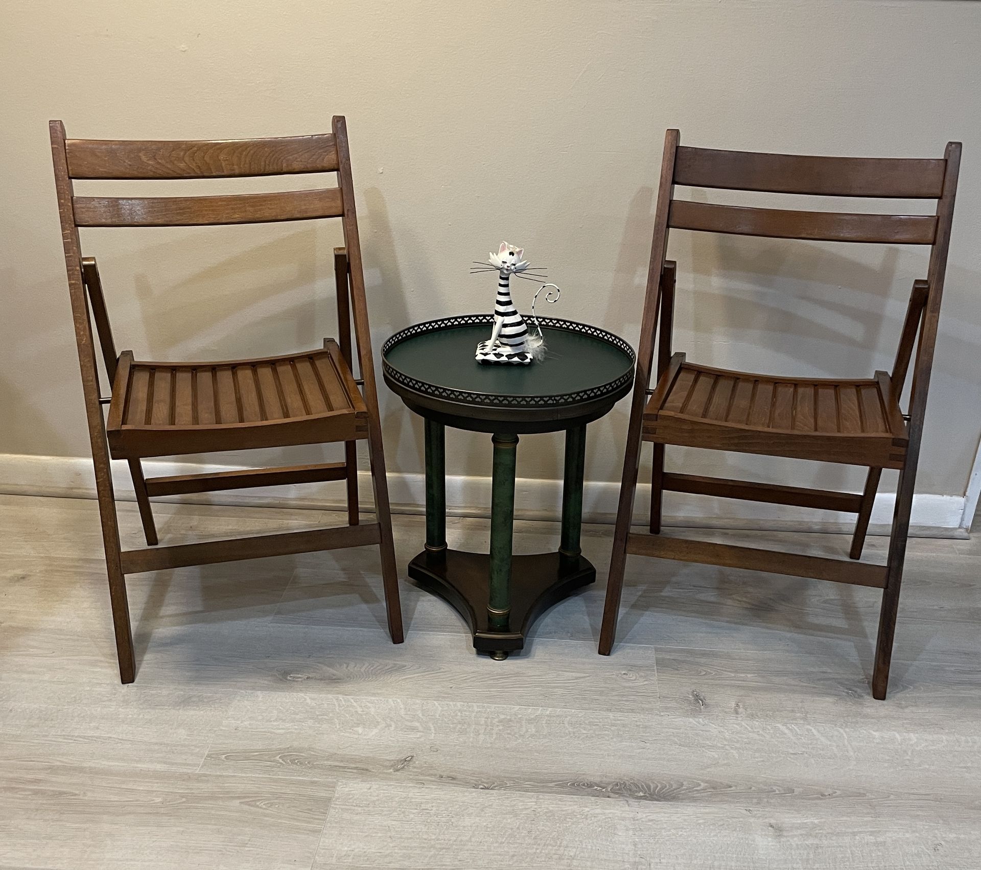 Vintage Mid-Century Romanian Wooden Slatted Folding Chair / Pair Great Condition