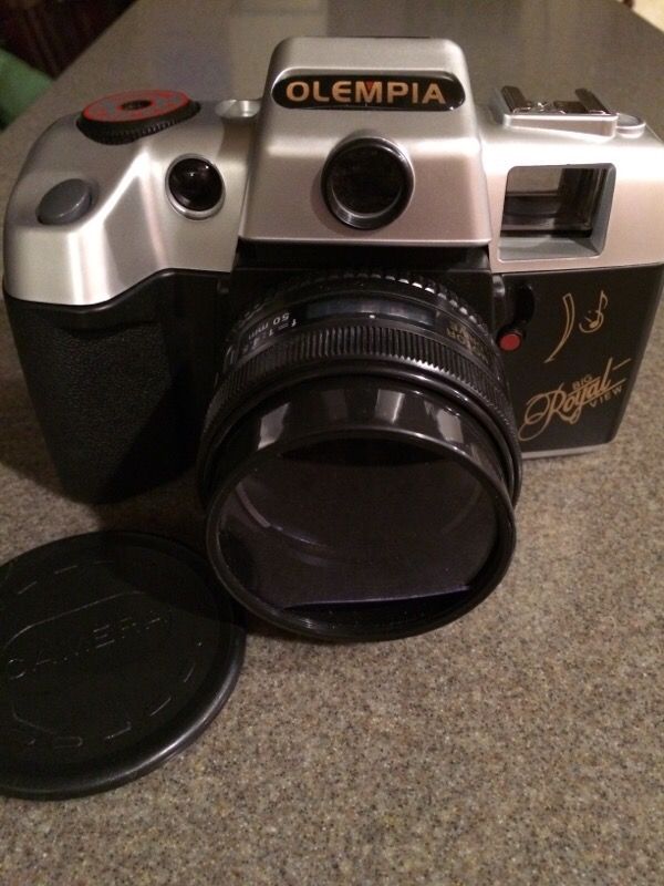 Olempia[NOT Olympia]Big Royal View 35mm Camera. Has a 50mm Auto Focus Lens, HotShoe Flash connection point[Does not come W /Flash. Great buy! Front lens cover is cracked! Great for vintage decor or use!