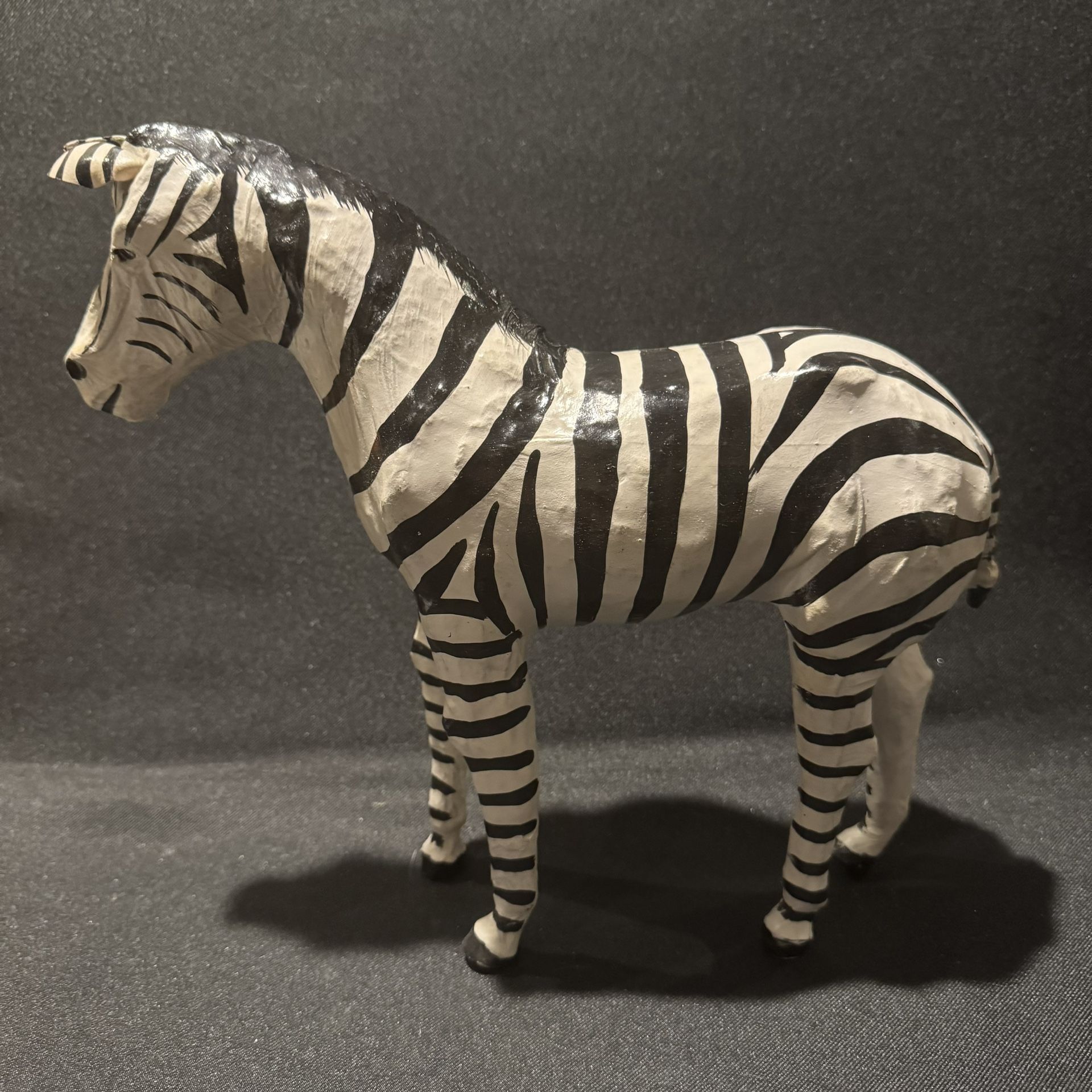 zebra statue figurine. about 8-10" tall. looks like paper mache but is much sturdier. very nice shelf piece for that african safari/animal print themed room