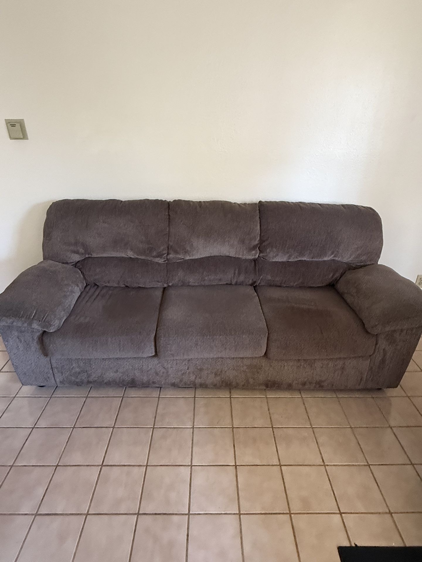 Brown couch 7 feet long. Height is 33 inches Depth is 38 inches Contact me when you're ready to come within the next hour. Thank you