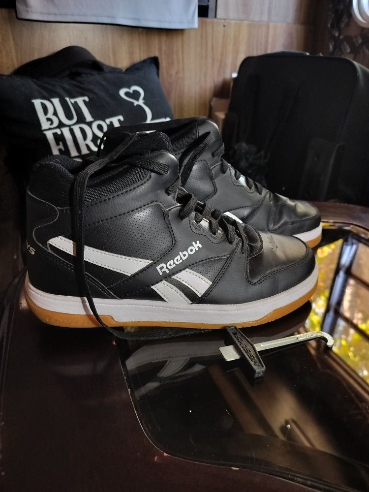 Size 7 Mens. Bought them on the Heelys website and only used them a few times. Like brand new. Comes with a key to take out the wheels to turn it into a normal walking shoe. Noble