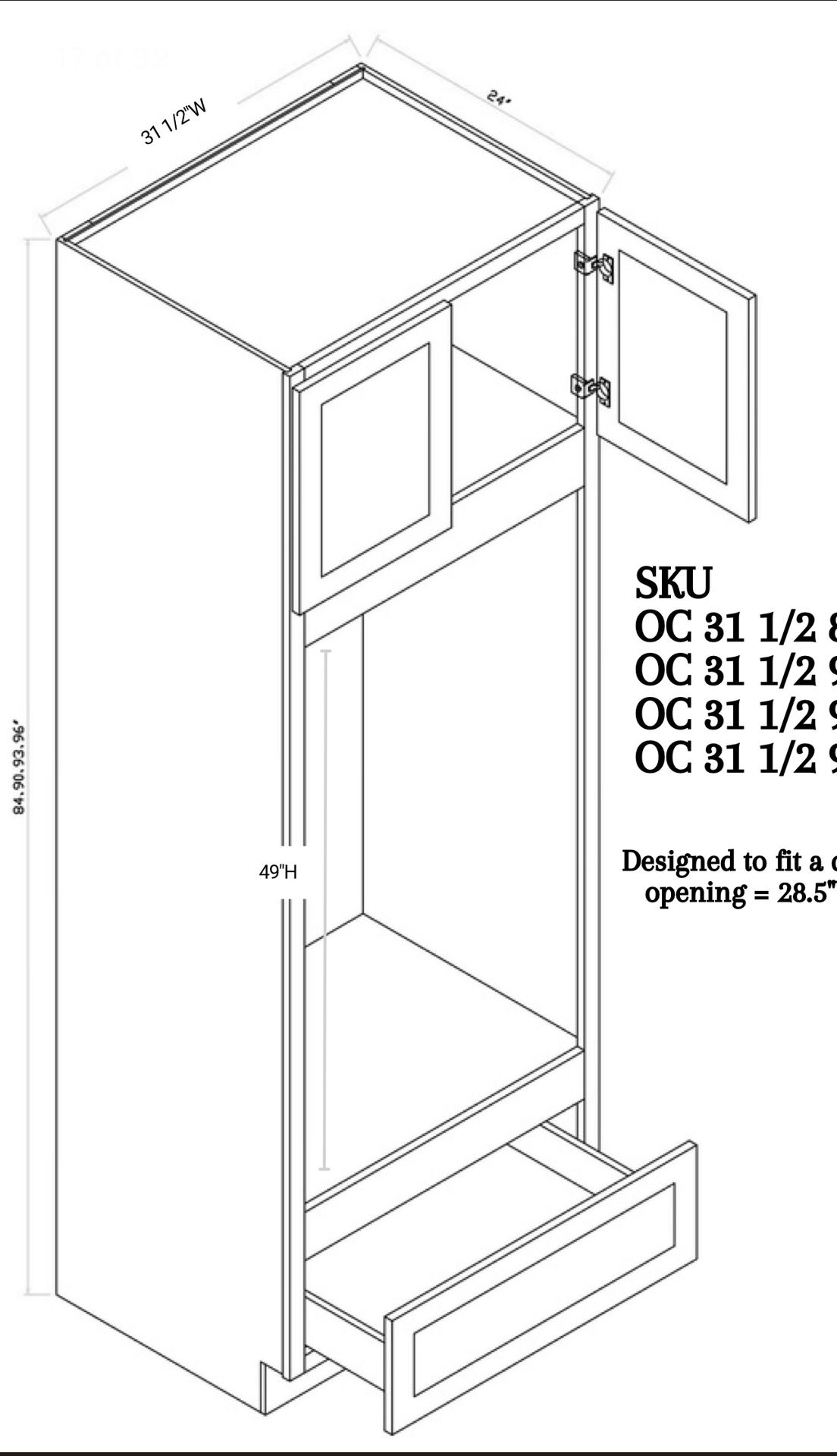 Wall oven cabinet 31 1/2”Wx 93”Hx 24”D
