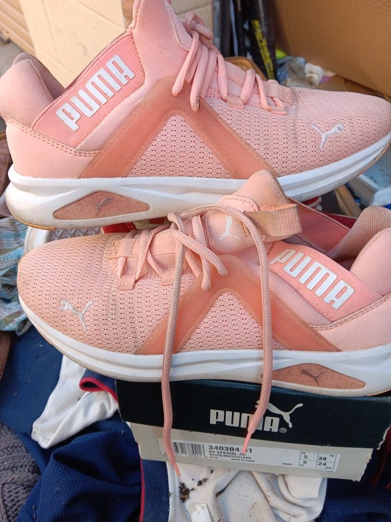Size 9 peach or salmon color tred not terrible on sole still life left need a good cleaning asking 15obo