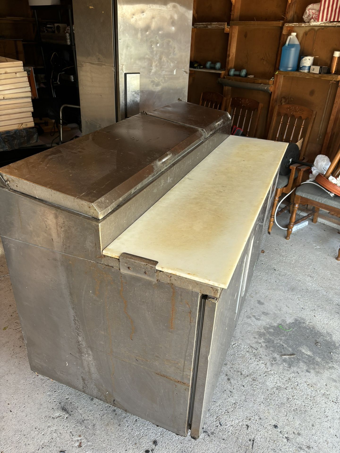 Two door 5ft prep cooler good for restaurant night need some gas. As is.